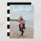 Letra manual do script Foto vertical Salve o lançamento da data. Uma foto totalmente personalizável salva o anúncio de data para sua família e amigos. Esta opção de gravação vertical da placa de data apresenta simples caracteres brancos e letras pretas e brancas. Você também pode personalizar a parte traseira do cartão de anúncio alterando o padrão com sua foto ou outra imagem.