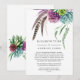 Cartão de anúncio de lista de convidados reduzida com plantas suculentas da moda e penas boho. Nesses tempos incertos, pode acontecer que você precise realizar um casamento menor do que o originalmente planejado. Este cartão de anúncio vai tirar a estranheza e tirar um peso da sua mente! Você também pode oferecer uma opção para se juntar a você em uma cerimônia virtual.