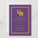 O logotipo das iniciais da University at Albany apresenta um design "UA" ousado e dinâmico, renderizado na cor roxa característica da universidade e delineado com uma borda dourada impressionante. As letras angulares e em bloco dão ao logotipo uma aparência forte e autoritária, perfeita para representar o orgulho e a identidade escolar. A estrutura simétrica e geométrica das letras transmite uma estética moderna e profissional.