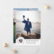 Mostre seu espírito escolar com este anúncio de graduação. Este anúncio clássico de graduação apresenta uma grande fotografia e um design de selo que incorpora o logotipo da equipe da sua escola rodeado por personalizáveis com o nome da escola e mascote ao lado do nome do formando e realizações como jogar na equipe de esportes da escola. O verso deste anúncio de formatura apresenta uma grande foto de página de cheio — excelente para compartilhar uma foto esportiva ou de infância.