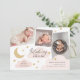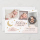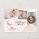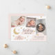 Um design de anúncio de nascimento divertido, mas elegante, que apresenta uma colagem de 3 fotos com roteiro de caligrafia na moda e estrelas desenhadas à mão, nuvens e lua crescente. Todas as cores são editáveis usando as ferramentas de edição.