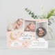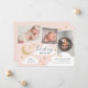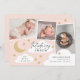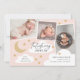 Um design de anúncio de nascimento divertido, mas elegante, que apresenta uma colagem de 3 fotos com roteiro de caligrafia na moda e estrelas desenhadas à mão, nuvens e lua crescente. Todas as cores são editáveis usando as ferramentas de edição.