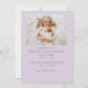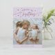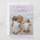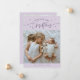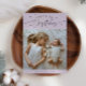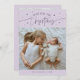 Cartão de nascimento com o tema do Natal moderno, com um texto tipográfico que diz "mais amor este Natal" com o seu retrato de recém-nascido. Este é um cartão de anúncio de nascimento para as férias! Adicione suas fotos, estatísticas de natalidade e uma mensagem! O fundo é roxo.