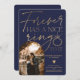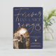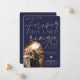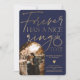 A Forever tem um belo anel para ele, a folha de ouro falsa do arco de fotos do script moderno e o anúncio do noivado azul do marinho com uma ilustração do anel do noivado. Todas as cores são editáveis.