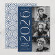 Anúncio de graduação de na moda com três fotos localizadas à direita do design em um layout vertical. "2025" é apresentado em letras brancas, modernas de arte, com fundo de marinho. Personalize o anúncio moderno da graduação de fotos, adicionando o nome do formando e o nome da escola. O design inverte para exibir um marinho e um plano de fundo geométrico branco. Perfeito para segundos graus e formandos!