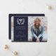 Um anúncio formal, mas moderno, de fotos de formatura para celebrar qualificações médicas profissionais. Apresentando uma foto de sangria de cheio com uma camada de cor e o símbolo caduceus (com a abreviação "MD") rodeado por uma coroa de louros em branco. O texto de modelo para os detalhes do formando é completamente personalizável, de modo que o tamanho da fonte, o estilo, a cor e o posicionamento podem ser alterados. A parte traseira apresenta um fundo de cor sólida e texto de modelo para uma mensagem mais longa. Se preferir não incluir nenhum texto no verso, basta apagá-lo antes de fazer o pedido. Se você preferir uma foto na parte traseira da placa, exclua tanto o fundo colorido quanto o modelo e faça o upload da sua própria foto. O design está disponível em outras cores e com qualificações médicas diferentes na minha loja.