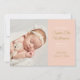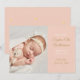 Cartão de anúncio de nascimento de bebê menina com foto moderno em dourado, para apresentar seu lindo bebê recém-nascido. A frente apresenta uma foto do seu bebê junto com texto dourado e branco para o nome e estatísticas de nascimento do seu bebê em um painel cor de pêssego que você pode personalizar para a cor de sua escolha. O verso tem estrelas douradas em cordas em um fundo cor de pêssego correspondente. Desenhado por Thisisnotme©