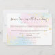 Para ocasiões em que uma cerimônia de casamento socialmente distante é necessária e é necessário desconvocar alguns convidados e convidá-los para a transmissão ao vivo, este design moderno contemporâneo tem um cabeçalho em uma fonte elegante e um belo fundo de lavagem de aquarela em tons de rosa e azul teal com salpicos dourados. Um fundo coordenado também está na parte de trás. Personalize facilmente o texto com seus próprios detalhes.