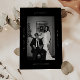 Minimalistic Modern Black & White "Just Married" 2-Photo Wedding Elopement Announcement Card. Add your names, elopement date, location, and your "we eloped" message for family and friends on the back.