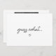 Minimalistic Black & White Script "Guess What..." Baby Pregnancy Announcement. Personalize with baby's name, due date, and ultrasound photo on the back.