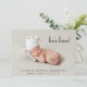 Mínimo anúncio de nascimento de fotos para anunciar a chegada do seu bebê à família e aos amigos. A foto de seu recém-nascido preenche a frente e está sobrecarregada com "ela está aqui!" "ele está aqui!" ou "Estou aqui!" em um roteiro contemporâneo (você pode mover este texto para outra área do cartão dependendo da sua foto selecionando "editar na ferramenta design"). Adicione o seu nome, a data de chegada e as estatísticas de nascimento abaixo. No verso, adicione quatro fotos adicionais da família, uma mensagem "bem-vindas" e os nomes dos pais e irmãos.