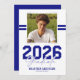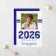Announce a major milestone with this modern masculine graduation announcement card. Featuring a sleek white background, the front showcases a square photo of the graduate accented by two sporty blue stripes running through the background for a bold, athletic feel. A strong “2026 Graduate” title is paired with the graduate’s name and the school, college, or university they attended.