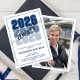 Modern Class of 2026 Navy Blue Graduation Announcement with stacked “2026” bold typography. There is a photo of the graduate on the back.