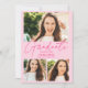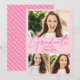 Celebrate the graduate! Modern bold hot pink and pastel pink 3 photos collage graduation with abstract geometric pattern at the back.