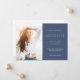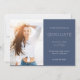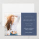 Modern graduate photo announcement featuring a stylish blue and white portrait, elegant typography, and clean minimal layout. Perfect for seniors celebrating their graduation milestone with a timeless design that highlights their graduate achievement and memorable photo.