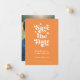 Modern Retro Typography over a soft orange background and a Photo Wedding Announcement Flat Card. With a unique typography "save the date" on the front, with names and date in a simple and minimal design on the back, add your wedding website for event details. The couples photo is a full-frame photo. A unique and affordable Wedding Save the Date for couples on a budget. Choose prints and/or a digital announcement download.