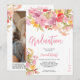 A modern boho graduation design featuring hand-painted pink and lavender florals paired with a clean, photo-forward layout. The soft watercolor blooms in blush, mauve, peach, and muted greenery frame the typography without overwhelming it, creating a balanced and refined look. The flowing blush script headline adds warmth, while the minimalist layout keeps everything polished and contemporary. The reverse side highlights a full portrait photo bordered with coordinating florals for a cohesive front-to-back presentation. Perfect for graduates who love soft, romantic aesthetics with a modern touch. Ideal for spring and early fall ceremonies, garden celebrations, or intimate open house gatherings.