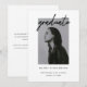 Modern Script Black & White Photo Graduation Announcement Card. Personalize with graduate's photo, name, school, year of graduation, and custom message on the back.