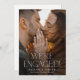 Anuncie sua noivado aos amigos e à família com anúncios elegantes de noivado! O anúncio do noivado apresenta a sua foto de noivado vertical, sangrada com cheio, com a mensagem "We're Engaged!" exibida em uma camada moderna de texto branco. Personalize a frente do anúncio com seus nomes e detalhes do casamento. O cartão se reverte para exibir uma foto adicional, mensagem pessoal e site de casamento. Adicione o URL do seu site de casamento ao modelo de código QR fornecido para que seus amigos e familiares possam digitalizá-lo para descobrir atualizações de casamento, informações de registro, RSVP on-line, etc. Este anúncio de dois noivados fotográficos é perfeito para casamentos casuais e formais.