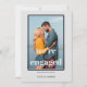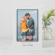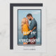 Cartão de anúncio do noivado de fotos moderno. O modelo de fotografia está configurado para que você adicione sua imagem, que é exibida no formato de retrato com uma borda offset e uma sobreposição de tipografia. "estamos noivos" é escrito em tipografia ousada e a design tem uma paleta colorida de cinzas escuras e cinzas de prata. O restante do texto é totalmente editável para que você adicione seus nomes e quaisquer informações adicionais. Um na moda, design minimalista para compartilhar suas boas notícias enquanto você organiza uma celebração ou fixa a data do casamento.