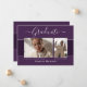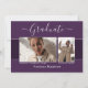 Lindos 2 fotos 7"x5", cartões de anúncio de graduação. Apresentando texto moderno com um roteiro elegante de caligrafia. Suas fotos estão finamente revestidas com um molde branco para aquele "Pop" extra. O design é complementado com fundo real em tons de terra de roxo. A parte traseira do cartão oferece um espaço de texto de anúncio personalizado para esse formando especial. Para ver mais itens como este, visite minha loja aqui em "www.Zazzle.com/LakeViewCardCo". Obrigados