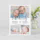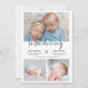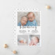 Moderno apresentando 3 fotos preto e branco anunciando o nascimento de gêmeos bebês, com um legal e elegante roteiro de pincel e bolinhas brancas e pretas editáveis no verso.