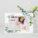 Anuncie sua formatura com este anúncio de graduação de foto floral, apresentando hidrângeas azuis em aquarela, rosas brancas e azuis-escuros, e folhagens exuberantes. Projetado para destacar sua foto de graduação favorita, este modelo é a mistura perfeita de clássico e moderno. Personalize com seu nome, escola, ano de formatura e uma mensagem personalizada para compartilhar sua conquista com familiares e amigos. Seja você enviando por correio ou compartilhando digitalmente, este design floral torna cada detalhe ainda mais especial.
