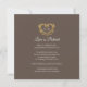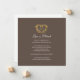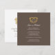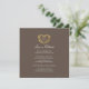 Um cartão de cancelamento de casamento com um monograma de coração decorativo em dourado antigo sobre branco e marrom escuro. Ideal para ser usado como cartão de informação de casamento para informar seus convidados sobre o cancelamento ou reprogramação de um casamento ou evento devido a doença ou circunstâncias imprevistas. Desenho de coroa de coração decorativo envolvendo as iniciais do seu monograma. Em efeito dourado lê-se casamento cancelado o amor é paciente. Outras opções de cores e itens correspondentes estão disponíveis. Desenho original de Sarah Trett para www.mylittleedenweddings.com