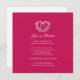 Um cartão de cancelamento de casamento com um monograma decorativo de coração prateado em branco e um rico tom de vermelho-berry. Ideal para usar como cartão de informação de casamento para informar seus convidados sobre o cancelamento de um casamento ou evento, ou remarcar devido a doença ou circunstâncias imprevistas. O desenho decorativo de coroa de coração envolve os iniciais do seu monograma. Em efeito prateado, lê-se "casamento cancelado, o amor é paciente". Outras opções de cores e itens correspondentes estão disponíveis. Desenho original por Sarah Trett para www.mylittleedenweddings.com