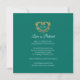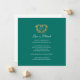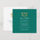 Um cartão de cancelamento de casamento com um monograma decorativo em coração de ouro antigo sobre branco e um rico tom esmeralda verde escuro. Ideal para ser usado como cartão de informação de casamento para informar seus convidados sobre o cancelamento de um casamento ou evento, ou remarcar devido a doença ou circunstâncias imprevistas. O desenho decorativo de uma grinalda de coração envolve os iniciais do seu monograma. Em efeito dourado lê-se casamento cancelado o amor é paciente. Outras opções de cores e itens correspondentes estão disponíveis. Desenho original por Sarah Trett para www.mylittleedenweddings.com