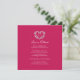 Um cartão de cancelamento de casamento com um monograma decorativo de coração prateado em branco e um rico tom de vermelho framboesa. Ideal para usar como cartão de informação de casamento para informar seus convidados sobre o cancelamento de um casamento ou evento, ou remarcar devido a doença ou circunstâncias imprevistas. O desenho da guirlanda de coração decorativo envolve as iniciais do seu monograma. Em efeito prateado, lê-se "casamento cancelado, o amor é paciente". Outras opções de cores e itens correspondentes estão disponíveis. Desenho original de Sarah Trett para www.mylittleedenweddings.com