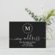 Simples e elegante fundo preto com um delicado monograma de coroa botânica branca, tipografia branca para detalhes do novo endereço.