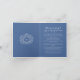 Anúncio de cartão dobrado de transmissão de vídeo ao vivo de casamento com monograma de folha desenhada à mão em azul clássico. Este cartão simples, porém elegante, faz parte do conjunto de casamento com monograma de folha desenhada à mão em branco e azul. Ideal para usar como cartão de informação de casamento para informar seus convidados de um evento de transmissão de casamento devido a circunstâncias imprevistas. Design simples de folhas circulando o desenho das iniciais do seu monograma. Em tons de azul clássico escuro e branco. Outras opções de cores estão disponíveis. Design original de Sarah Trett para www.mylittleedenweddings.com
