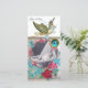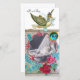 Design floral elegante, engraçado, com estilo vintage, com um bebê e cegonha voadora entre as lindas flores rosa, rosas vermelhas, azul-lacrimogêneo e uma pedra gema 3D brilhante e vibrante de Búlgaro Lumini (c).