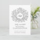 Cartão de anúncio de cancelamento de casamento com monograma de folha desenhada à mão em cinza muito escuro. Este cartão simples, porém elegante, faz parte do conjunto de casamento com monograma de folha desenhada à mão em cinza escuro. Ideal para usar como cartão de informação de casamento para informar seus convidados sobre o cancelamento de um casamento ou evento, ou remarcar devido a doença ou circunstâncias imprevistas. Design simples de folhas circulando o desenho das iniciais do seu monograma. Em clássico cinza escuro sofisticado quase preto e branco. Outras opções de cores estão disponíveis. Design original de Sarah Trett para www.mylittleedenweddings.com