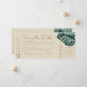 Bilhete gigantesco de embarque de folha Monstera tropical, salvo o cartão com vibrações retrorminimalistas de praia, perfeito para um casamento na ilha de praia que os convidados estão viajando. Há espaço no verso para informações sobre o viagem, ou apague o texto do espaço reservado e jogue com o trabalho de arte grande de folha no verso. Todas as fontes e cores de fundo são editáveis para corresponder ao estilo de casamento tropical.