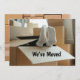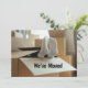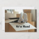 A mudança na placa de endereço mostra uma foto de dois pés vestindo meias brancas saindo de uma caixa móvel de papelão. O texto diz "Nós nos movemos." O verso mostra uma foto de uma parede de caixas onduladas empilhadas e os detalhes da movimentação, como endereço e número de telefone. Personalize e personalize todo o texto para sua grande jogada. Carta engraçada, espirituosa, humorística que reconhece como é cansativo se mexer. Mostre sua fadiga e senso de humor com este cartão de anúncio engraçado.