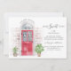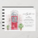 Um cartão de anúncio moderno em casa para informar sua família e amigos sobre sua nova casa e endereço. Este cartão tem uma porta vermelha, cor d'água, paredes de tijolos vermelhos, duas fábricas em cada lado da porta, e o número da casa na porta. Adicione seus novos detalhes de endereço e uma mensagem especial na parte frontal do cartão, clicando no botão "Personalizar"