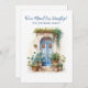 Uma encantadora ilustração azul de porta com aquarela decora este cartão móvel. Um anúncio bonito para enviar a todos os seus amigos e familiares. Projetado para você pelo Blackberry Boulevard.
