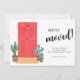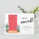 Diga a sua família e amigos que você mudou com este charmoso cartão de anúncio. Apresenta uma porta vermelha da frente e potes de cactos pintados manualmente. Facilmente personalizável com seu novo endereço e número na porta. Use a Ferramenta Design para alterar o tamanho, o estilo ou a cor do texto. À medida que criamos a nossa trabalho de arte, não encontraremos esta imagem exata de outros designers. Original Watercolor © Michele Davies.