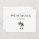 Tropical, mudamos para a praia... e mudamos o cartão de anúncio. Com uma simples tipografia e um design de palmeiras desenhadas à mão, as letras negras podem ser personalizadas com suas informações. Excelente por deixar os entes queridos saberem da sua nova casa perto da praia ou nos trópicos.