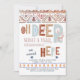 Cartão de anúncio em movimento de feriado nórdico com listras, árvores de natal, tipografia química e veados florestais. A design tem uma paleta de cores boho neutra em tons de ferrugem, bege, cobre, cinza, rosa e azul. O texto diz "Oh veado que ano, a boa notícia é que nos mudamos para cá" (que você pode editar para "me mudei", se necessário). O modelo está configurado para que você adicione seu novo endereço, a saudação de sua estação e seus nomes.