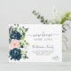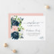 Flores elegantes novas casas, o mesmo cartão de anúncio comovente, com um belo marinho azul escuro da meia-noite e um buquê botânico rosa-pincel com folhagem verde e um roteiro de caligrafia de caligrafia.
