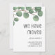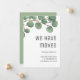 Cartão de anúncio simples e belo e flutuante botânico para enviar aos seus amigos e familiares para notificar seu novo endereço. Pode ser usado como um cartão de lar também para seus novos vizinhos. Ilustrada e projetada por Patricia Alvarez.