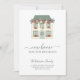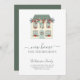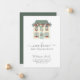 Nova casa moderna para os feriados Cartão de anúncio comovente de Natal com uma bela casa decorada festiva e um tradicional script de tipografia verde de escrita manual.++++++++++++++ Fácil de personalizar com seu texto, novo endereço e assinatura!