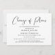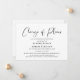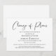Anúncio moderno e minimalista de mudança de planos de casamento preto e branco, adiamento ou cancelamento. "Mudança de planos" é escrito em uma fonte estilosa e você pode personalizar facilmente se o casamento foi cancelado, a data foi adiada ou quaisquer outros detalhes foram alterados.