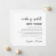 Anúncio de mudança de local de casamento elegante com "atualização do casamento novo local" escrito em uma fonte moderna e tipografia ousada e atual (personalize para "nova data", "casamento menor", etc.). Personalize sua mensagem de mudança de planos, adicione seus nomes em uma fonte semelhante a uma assinatura e adicione o site do seu casamento no verso ou deixe em branco.
