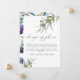 Um design elegante para anunciar uma mudança nos seus planos de casamento. Com belos ramos de oliveira e folhas verdes em aquarela, com um título "mudança de planos" em caligrafia moderna verde escura, sua mensagem em fonte sans serif preta, em um fundo branco. O verso apresenta um padrão de azeitonas e folhas em aquarela preta e verde.