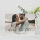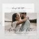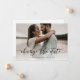 Quando você precisar adiar o seu casamento, informe seus convidados com este cartão de mudança de data com foto elegante e espaço para todos os detalhes (frente e verso). Apresenta um script de caligrafia elegante e layout sofisticado com sua foto. Todas as cores são editáveis.