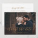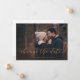 Quando você precisar adiar o seu casamento, informe seus convidados com este cartão de mudança de data de foto elegante e sofisticado com espaço para todos os detalhes (frente e verso). Com uma fonte de caligrafia elegante e layout sofisticado com sua foto. Todas as cores são editáveis.